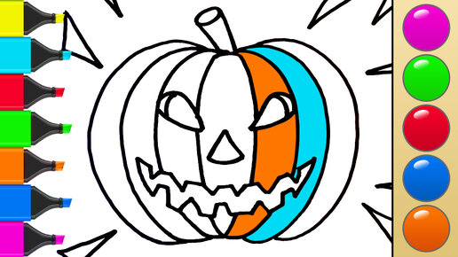 Как нарисовать ТЫКВУ для Хэллоуин / мультик раскраска ТЫКВА для детей / Раскраски малышам