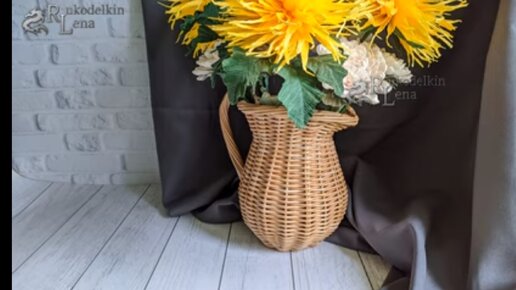 Кувшин пузатик на литровую банку из газетных трубочек. Мастер класс плетение из бумажной лозы