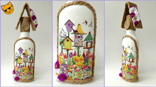 Декор бутылки. Декупаж и джут.
