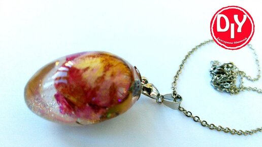 Кулон из двух половинок без специальной формы с розой из эпоксидной смолы своими руками.