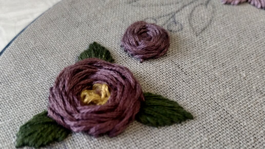 Вышиваю розу с серединкой и листочками