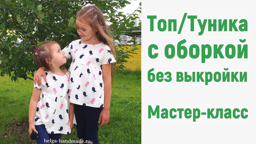 Как сшить топ/тунику с оборкой без выкройки / Футболка со спущенным плечом