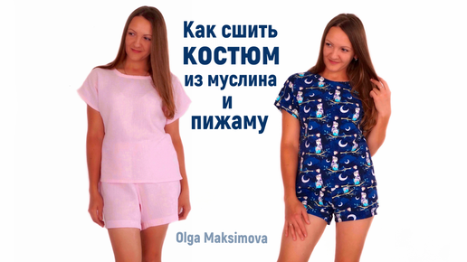 Как сшить пижаму/Домашний летний костюм/Шорты и футболка со спущенным плечом из муслина DIY