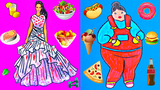 Paper Dolls Dress Up Sisters Fat & Thin Dresses Handmade - Barbie Story & Crafts from Dolls podium DIY