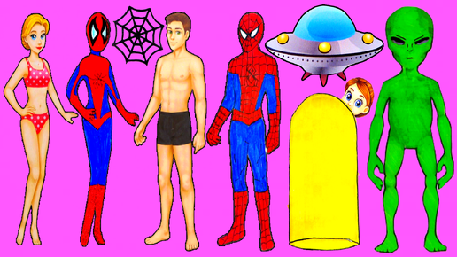 Paper Dolls Family Dress Up Alien & Superhero Handmade - Barbie Story DIY