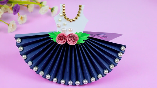 Открытка на 8 марта своими руками | Как сделать подарок Маме из бумаги | Открытка Платье с цветами