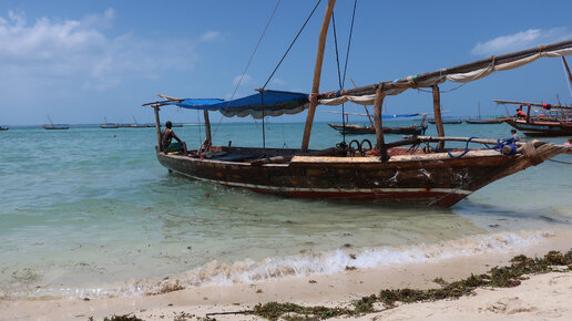 Отдых на Занзибаре. Во время сильного отлива, идем пешком по мелководью до острова во время экскурсии.