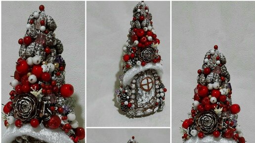 Домик- елка из коры и шишек.Поделка в садик или школу.
