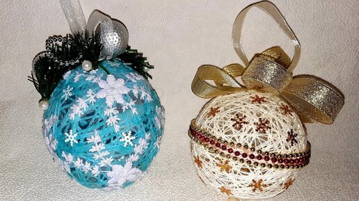 Из ниток и клея пва сделаем красивые новогодние шары.