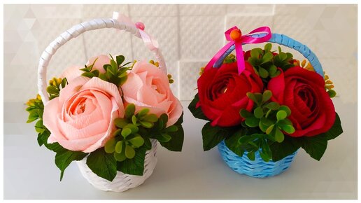 Простая ИДЕЯ подарка ко Дню Матери СВОИМИ РУКАМИ. Плетеная корзинка. Цветы из бумаги.