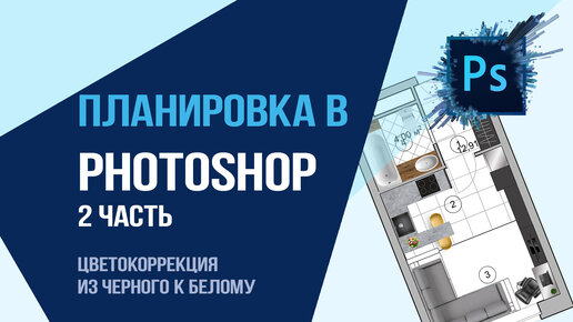 Планировка в Photoshop 2 часть. Создание коллажа, вид сверху с нуля. Цветокоррекция: как сделать из черного цвета - белый