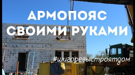 Армопояс в доме из газобетона между 2 этажом и чердаком. Монтаж. Заливка.