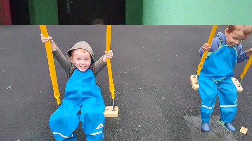 Мои двойняшки Сеня и Ярик резвятся в луже и делают вертолетики на качелях