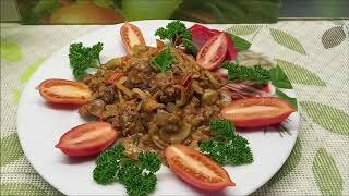 Тушеная печень с овощами.
