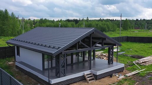Баня с террасой в стиле шале 8х12м