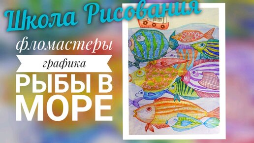 Цветная графика фломастерами. Рыбы в море. Школа рисования для детей