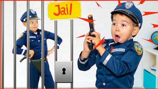 Pretend play police and jail with papa and mama