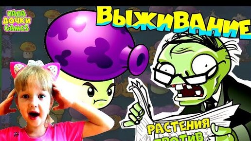Растения против Зеленых Выживание Ночь! Растения Против Зомби прохождение Выживания Папа и Дочка