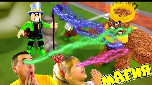 Папа учит Арину Магии! Симулятор Мага в Roblox! КАК Победить Босса? Wizard Simulator