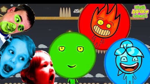 Приключения Огонь и Вода Смешные Шарики #4. Игра на троих. Убежали от Злых Пушек. Видео для детей