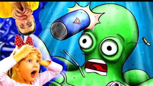 Этот Осьминог хочет Очистить Океан и Всех Съесть! Папа и Дочки в Игра Tasty Planet Forever