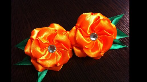 Украшение на резинку Канзаши / Оранжевые цветочки