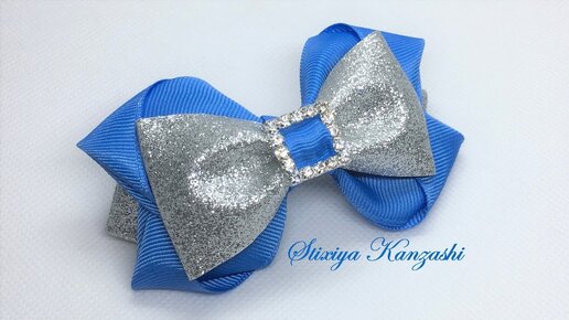 Украшение на заколку Канзаши / Бант из репса и ЭкоКожи Без Шаблона