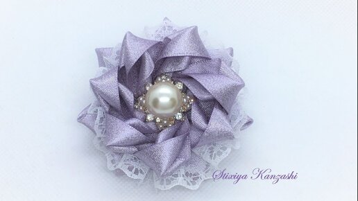 Украшение на заколку Канзаши / Цветок из ленты 2 см и кружева