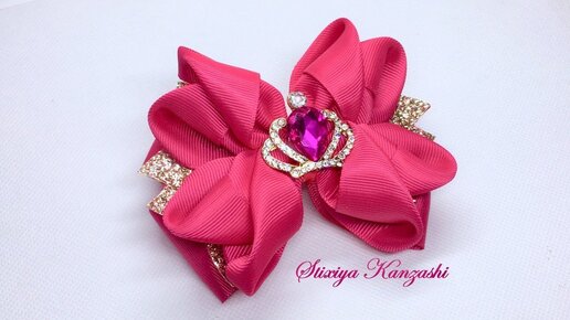 Украшение на заколку Канзаши / Яркий пышный бант
