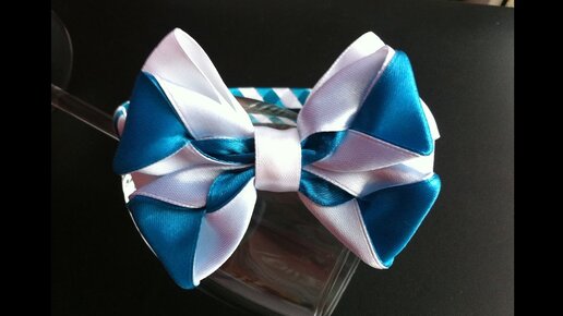 Украшение на ободок Канзаши / Бело-бирюзовый бант