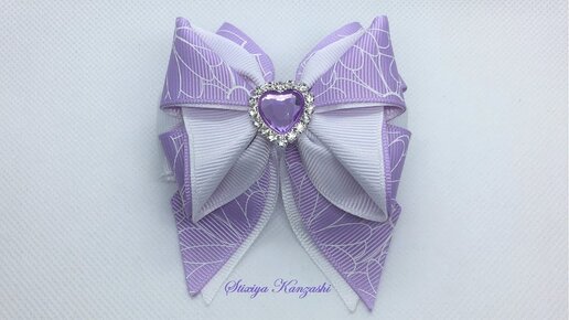 Украшение на резинку Канзаши / Двухцветный бантик из репса