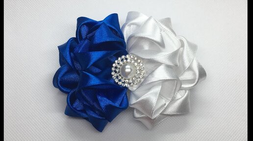 Украшение на заколку Канзаши / Двухцветный пышный бант