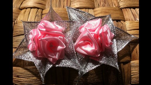 Украшение на заколку Канзаши / Мини-розочки / Очень легко