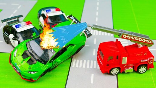 Мультик про машинки - 214 серия: Полицейская погоня, Гоночная машина, Пожарная машина, Авария