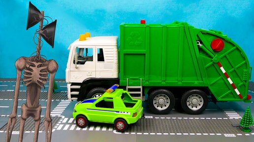 Сиреноголовый против машинок. Мусоровоз помог пластиковым машинкам 483 Серия мультик про машинки