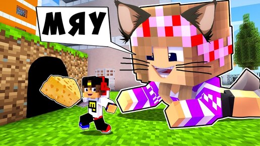 Ребенок и Девушка Как пройти Майнкрафт, но игра кошки мышки ! Нуб и ПРО Видео Minecraft