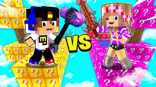 Ребенок и Девушка Как пройти Майнкрафт, но Лаки Блок или Лаки Блоки ! Нуб и ПРО Видео Minecraft