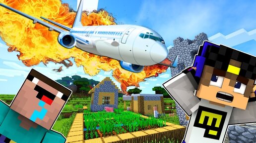 Крушение Самолета Нуб и ПРО Спасают Деревню Жителей в Майнкрафт Троллинг Видео мультик для детей