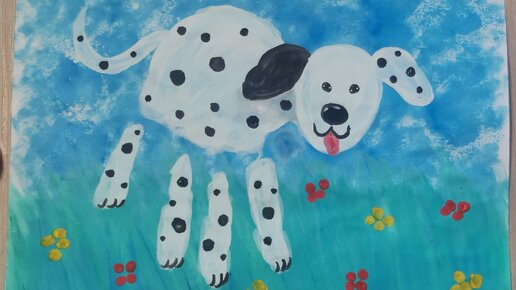 Необычный рисунок. Рисуем собаку далматинца ладошкой