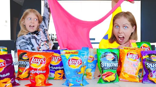 Папа Устроил Слайм Lays Челлендж! Что Внутри у кого Лучший Слайм? у Мамы или Миланы!