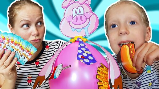 Новый Челлендж игра Парасенок Обжора как БУМ Балун Кто выиграет в этой Битве Мама папа или Милана