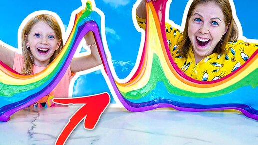 Милана и Мама Сделали Радугу из Слайма Rainbow Slime Party Делаем Слайм Радуга!
