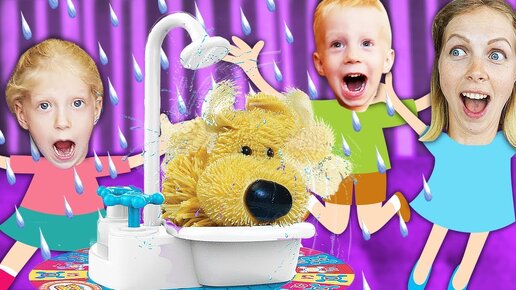 Милый Щенок Всех Обрызгал Водой! Новый Челлендж Мама Милана и Даня Bграют ез Папы на Family Box!