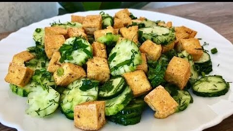 Салат огуречный с жареным сыром «Тофу» | Необычно и вкусно!