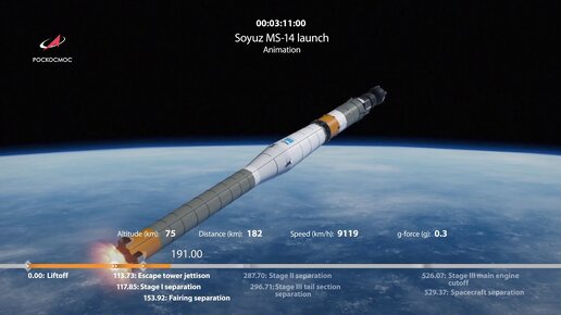 Циклограмма пуска РН «Союз-2.1а» с ТПК «Союз Мс-14»