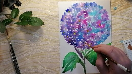 Нарисуем ароматную гортензию поэтапно. Быстрый рисунок акварелью
