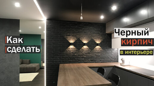 Черная стена под кирпич в интерьере гостиной / Как сделать