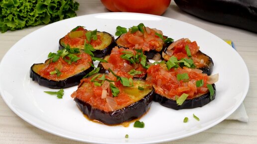 Баклажаны жареные на сковороде с помидорами и чесноком