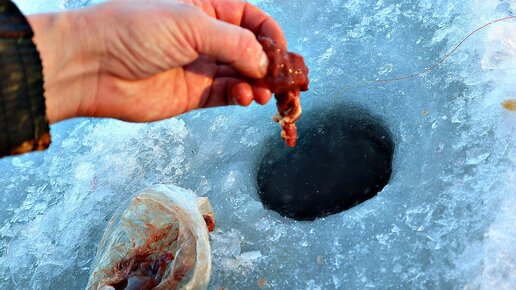 Насадите это на крючок. На эту наживку ловится хищники и мирная рыба зимой и летом. Наживка печень.