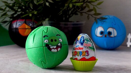 Видео с крашиками Энгри Бердс. Птички и Свин. Открываем Киндер сюрприз